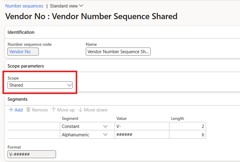 Shared Number Sequence: The number sequence for the vendor master must be shared between the legal entities where data sharing is required.